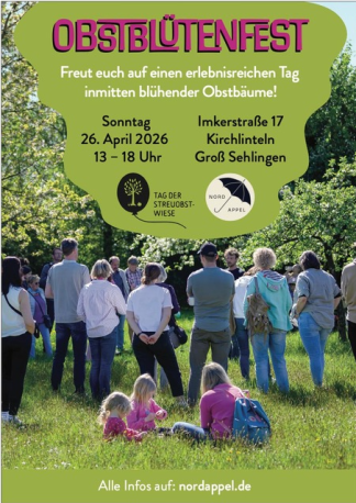 am 26. April feiern wir an unserer Mosterei in Groß Sehlingen den europäischen Tag der Streuobstwiese: Führungen durch die blühenden